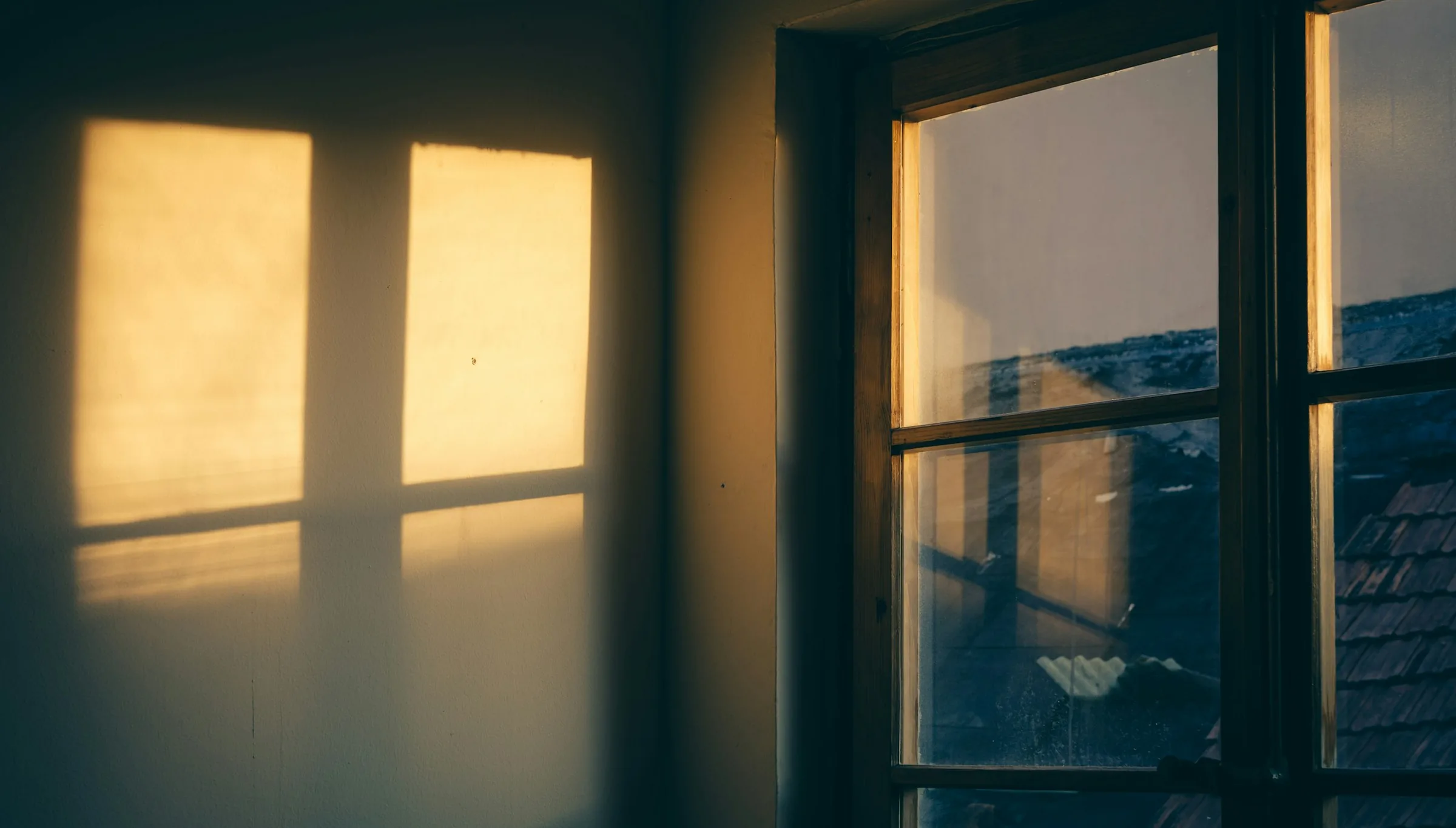鍵を閉め、階段を下りる。アパートの踊り場の窓から朝日が差し込んでいた。古い網入りガラスにひびのような模様が入っていて、その向こうの空が細かく割れて見える。光が手すりの影を床に落としていた。窓の形が、そのまま床に置かれているみたいだった。
